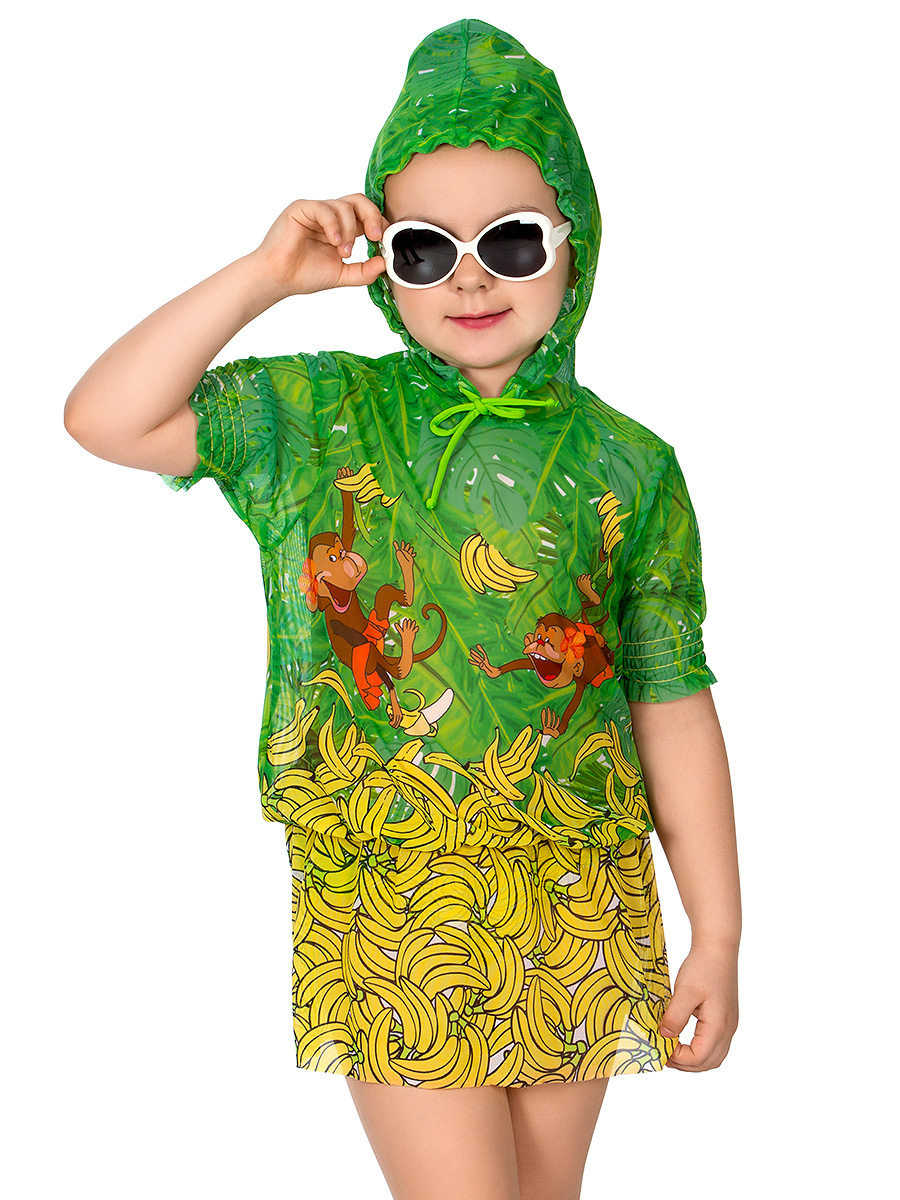 Удобный летний аксессуар для девочек, который сочетается со всеми купальниками коллекции. Туника с короткими рукавами, капюшоном на завязках и коротенькой юбочкой. Обработка гофре по поясу и рукавам улучшает посадку по фигуре. Модель выполнена из мягкой солнцезащитной сетки в ярком принте «Банановый рай».