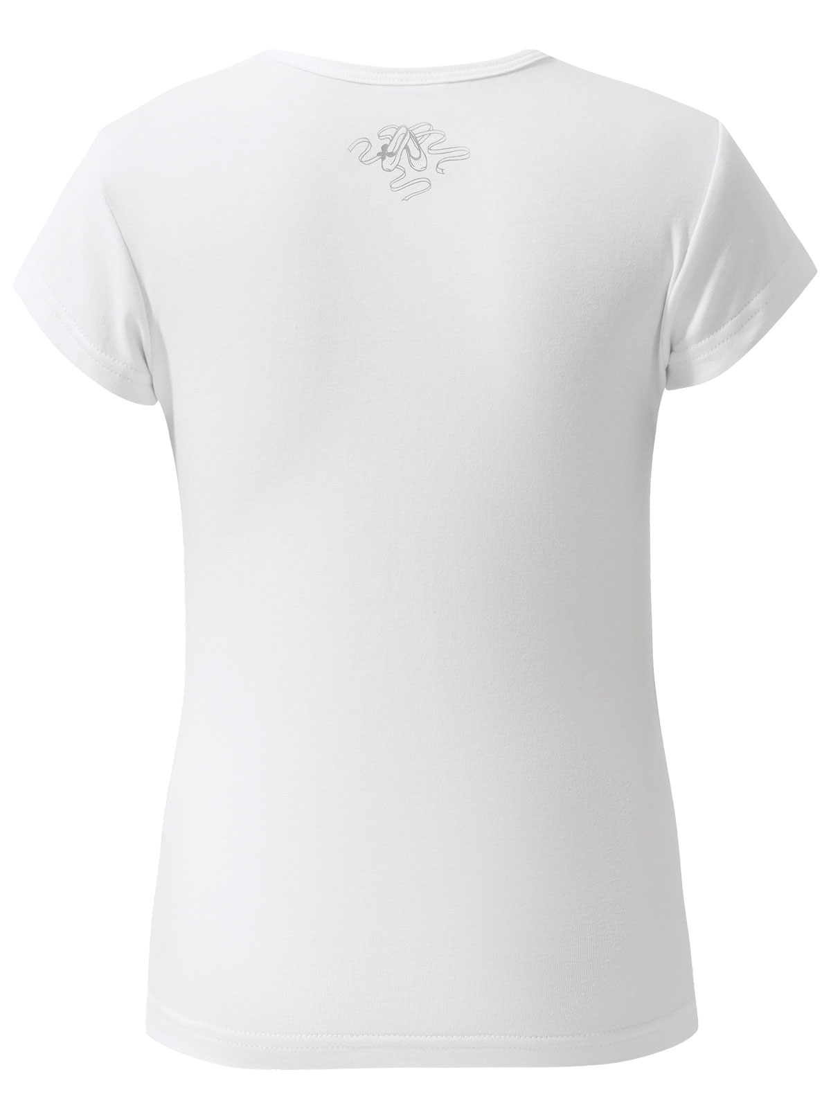 Футболка спортивная для девочек приталенного кроя с принтом «Фея-балерина» и отделкой кристаллами Swarovski®. На крыльях используются специальные краски, создающие необычный перламутровый мерцающий эффект.
