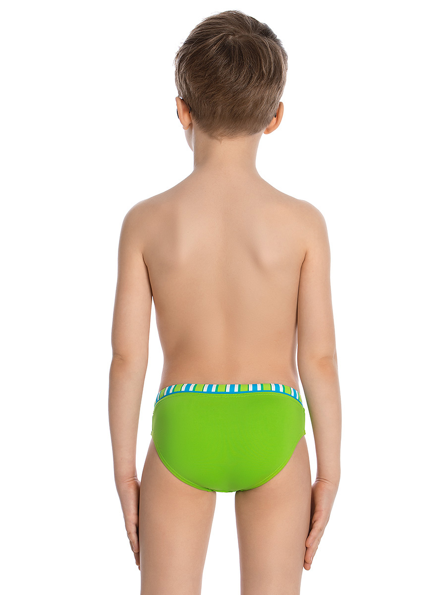 Яркие плавки для мальчиков. Удобная модель комфортной посадки с контрастным отрезным поясом и потайным шнуром. Изделие декорировано голубыми кантами и резиновым принтом «Смешная обезьянка» по передней детали.