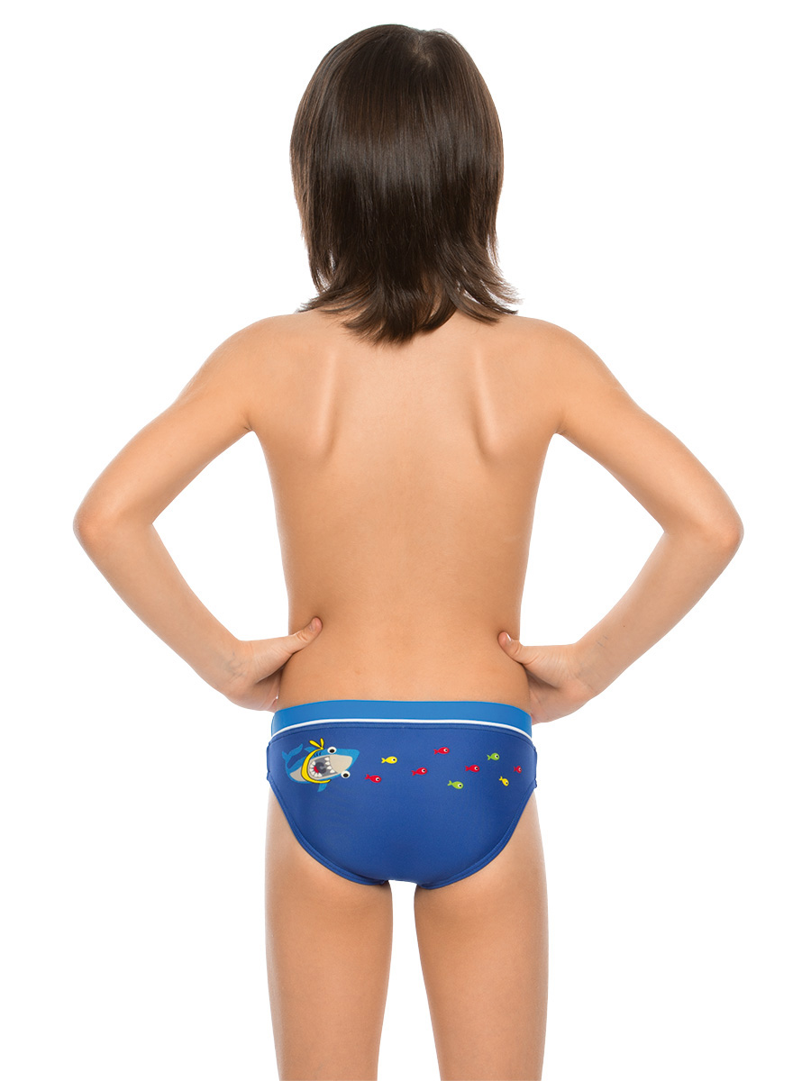 Удобная модель комфортной посадки с контрастным отрезным поясом запакованного типа и потайным шнуром – для регулировки объема. Изделие декорировано белыми кантами и резиновым принтом, надписью NIREY и принтами в общей стилистике коллекции «Акулы».