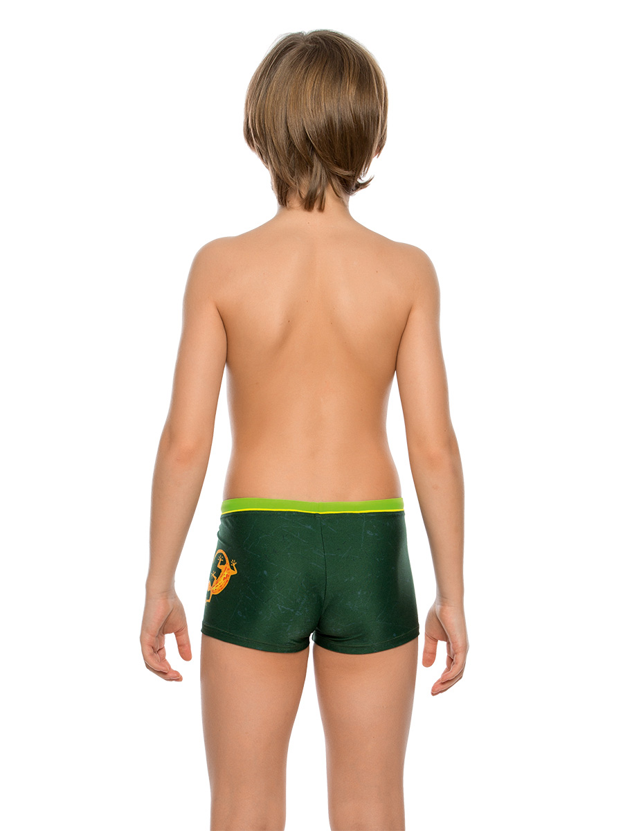 Модные плавки-шорты для школьников и подростков. Модель комфортной посадки с отрезным контрастным поясом запакованного типа и эластичным шнурком – для регулировки объема. Плавки выполнены из матовой лайкры в прогрессивной технике принтования. Модель оформлена рисунками из коллекции «Ящерицы», резиновым логотипом NIREY и контрастным кантом, которые подчеркивают спортивный стиль изделия.