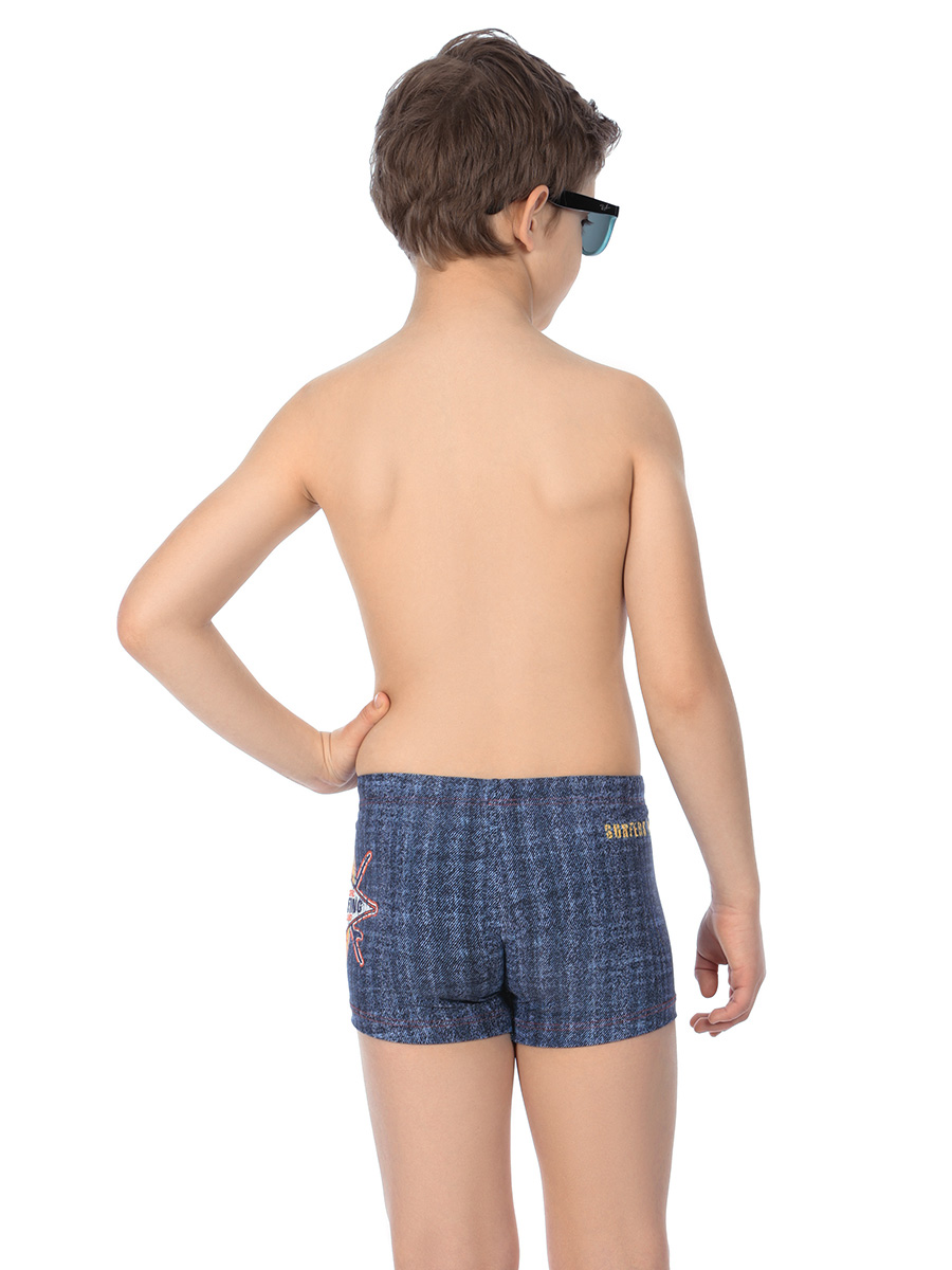 Классические, слегка удлиненные плавки-шорты для мальчиков-подростков. Изделие облегающего типа, комфортной низкой посадки, с анатомическим рельефным кроем по передней детали. Эластичный пояс дополнен контрастным потайным шнурком – для регулировки посадки на теле.